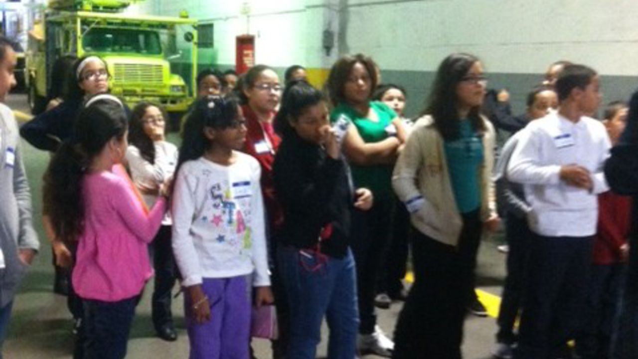 Groundswell and the New York City Department of Transportation (NYC DOT) designed the Traffic Safety Sign Residency Program to engage public school students in exploring traffic safety information through the creation of original street signs. Signs designed collaboratively by students at each of our partner schools are digitally rendered by Groundswell artists, fabricated by NYC DOTs Sign Shop, and temporarily installed in local locations students identify as in need of traffic signage. Through this program, students learn how signs and symbols can work to communicate ideas and explore visual art techniques to develop graphic images. These signs then help increase safety awareness and prevent accidents in locations around each school community. Students from PS 100 observed traffic safety challenges in their neighborhood and decided to tackle the relevant challenge of reminding pedestrians to pay attention to the road and not thier media device.
